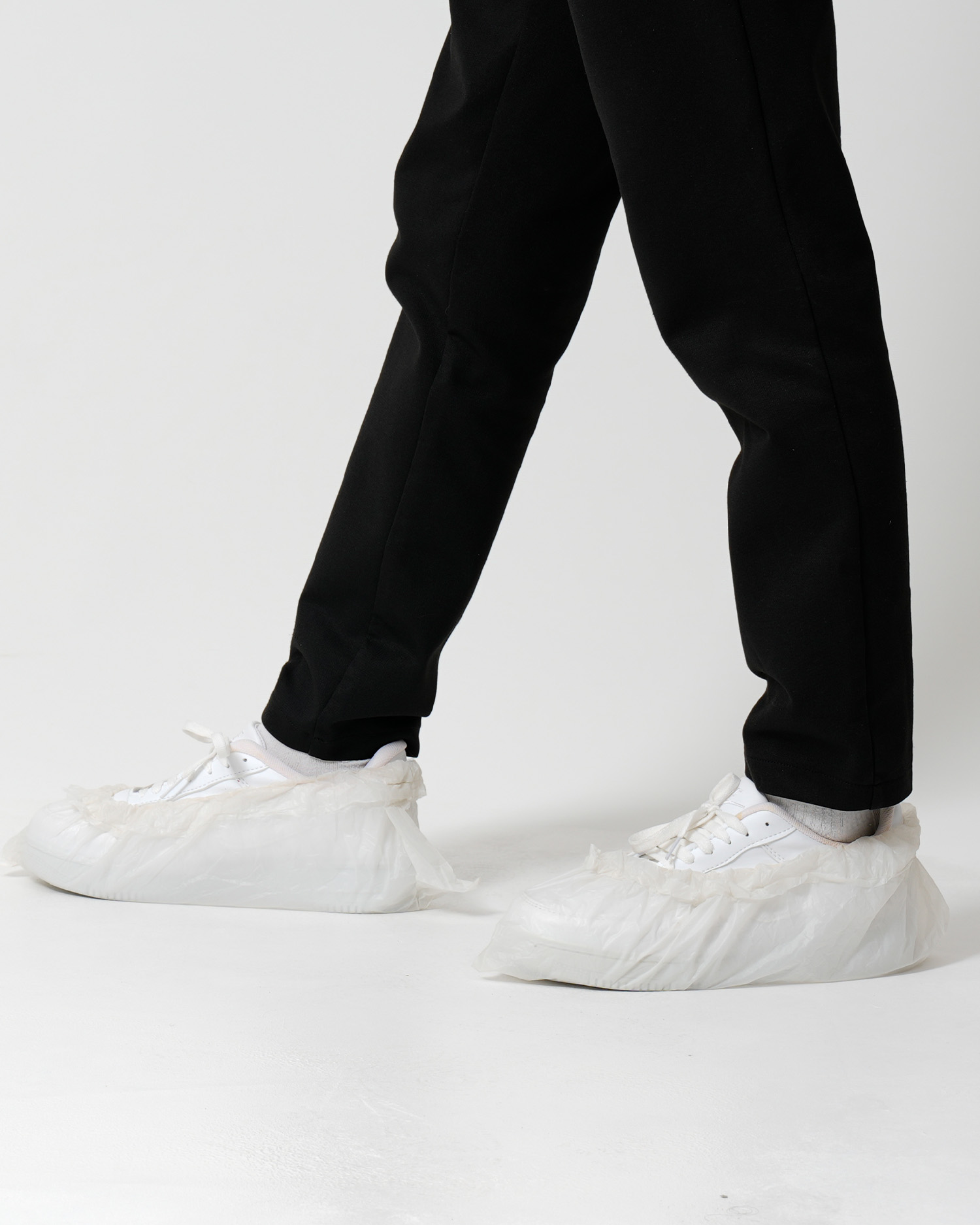 Made from polypropylene, non-woven fabric. Non-woven fabric is a tightly woven, durable fabric. It’s generally available in white. Those looking for more durable overshoes often opt for this model. This model is designed to fit all foot sizes. The durable elastic section prevents it from slipping easily over the shoe.